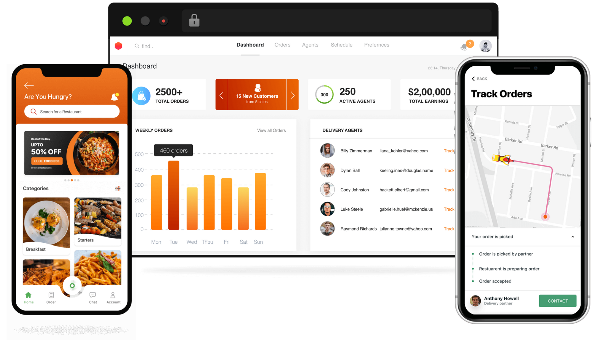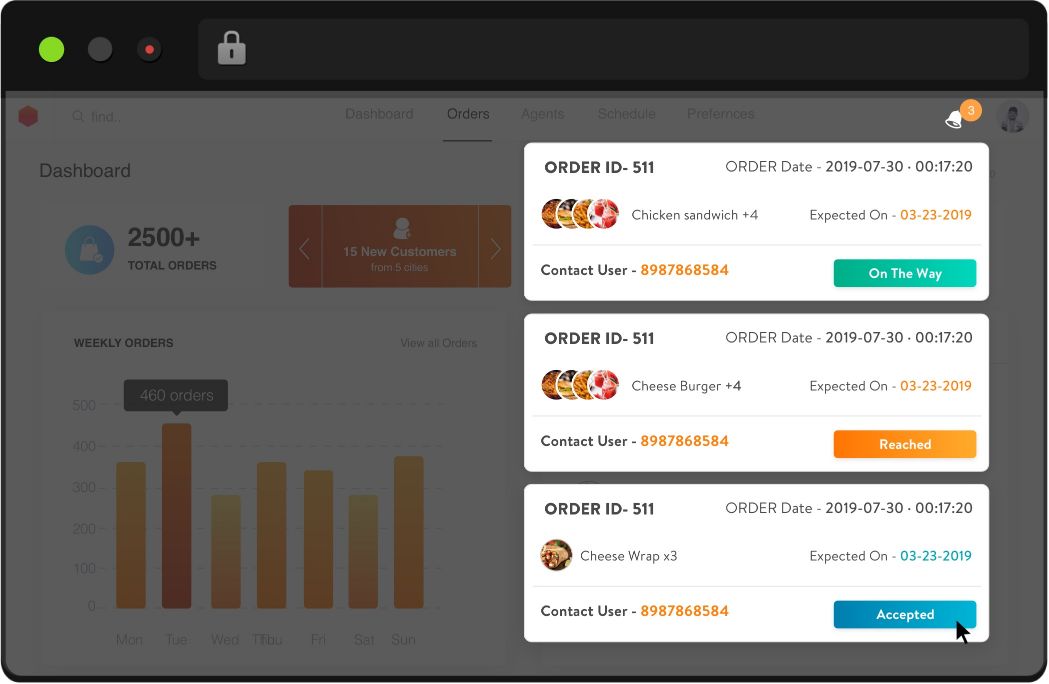 Own branded customer app, delivery app and admin dashboard for managing your orders.